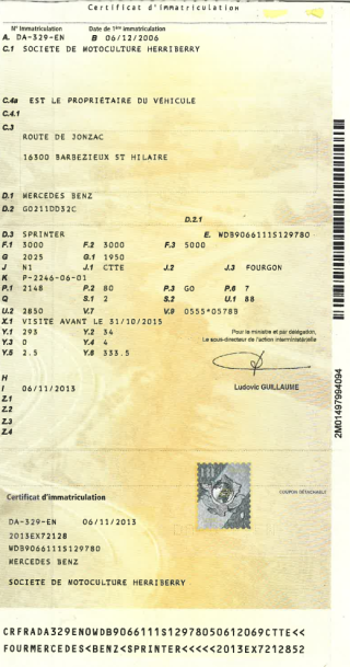 Certificat d'immat. :