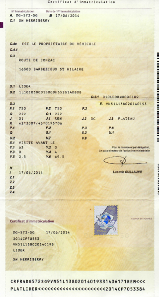Certificat d'immat. :