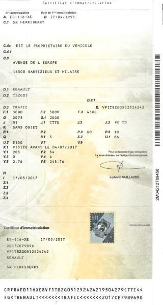 Certificat d'immat. :