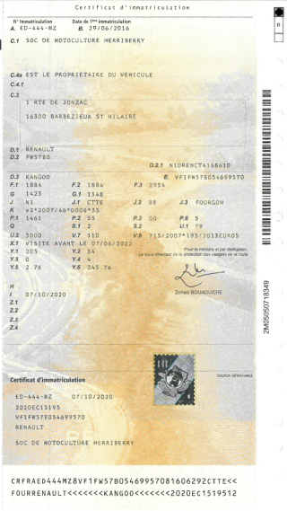 Certificat d'immat. :