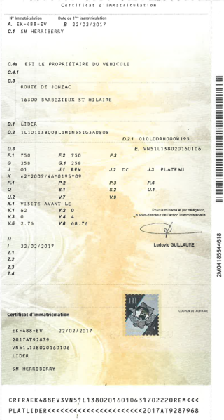 Certificat d'immat. :