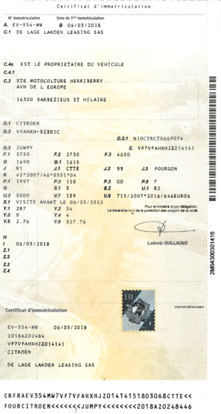 Certificat d'immat. :