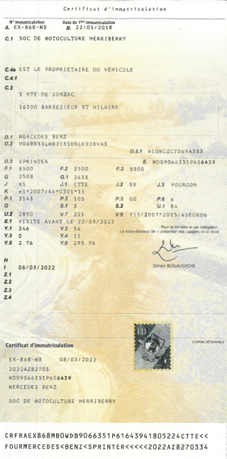 Certificat d'immat. :