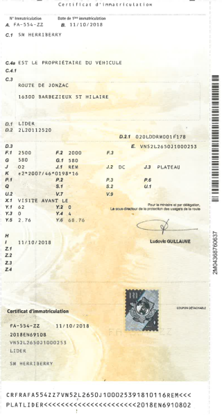 Certificat d'immat. :