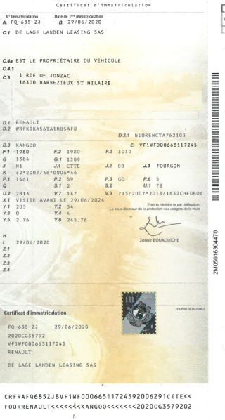 Certificat d'immat. :