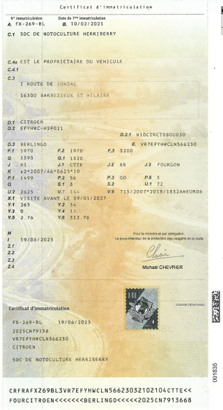 Certificat d'immat. :