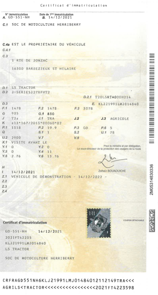 Certificat d'immat. :
