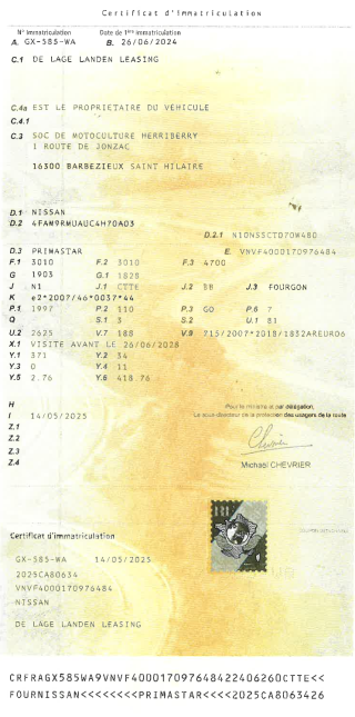 Certificat d'immat. :